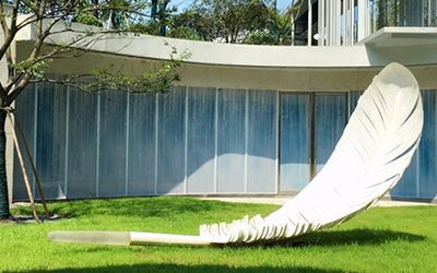 幾何塊面?玩兒的是抽象派!說白了,就是用方方、圓圓、三角這些基本幾何體,拼出個大致意思。啥材料都能玩這套,但目前最主流的是兩種?:金屬家族(不銹鋼板、鍍鋅板、鐵板),或者玻璃鋼。